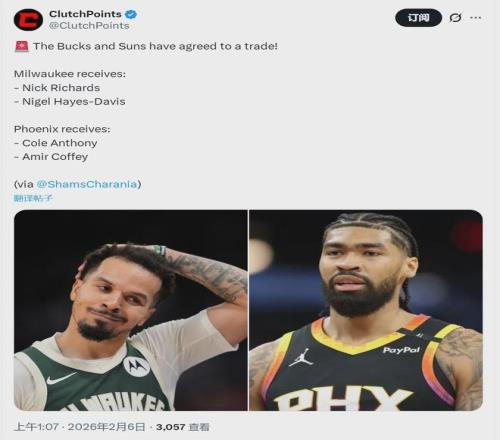 与此同时,雄鹿刚刚达成一笔2换2的交易:将科尔-安东尼和科菲送去太阳,换来尼克-理查兹和奈杰尔-海斯。目前雄鹿20胜29负排名东部第12,落后第10的公牛3个胜场。理查兹本赛季场均3.2分3.3篮板;奈杰尔-海斯场均1.3分1.2篮板。