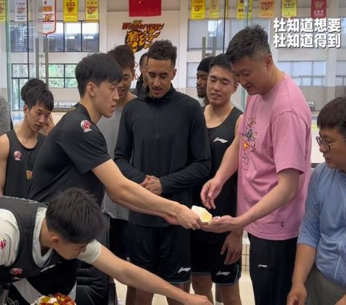 准备活动结束,杜锋还是获得了足够的尊重。李文昊特地切了一块蛋糕给杜锋,这就是杜锋在队内的地位。之前也出现过年轻球员给杜锋切蛋糕的情况,他对于年轻球员的帮助还是比较大的。