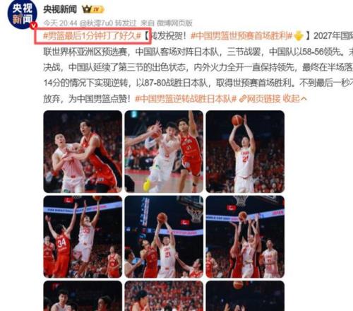 在昨晚结束的男篮世预赛第三轮角逐,中国男篮在客场落后15分的情况下,凭借胡金秋、赵继伟、贺希宁等球员的发挥,87:80惊险逆转日本队,在客场拿到一场胜利,也取得了中国男篮在世预赛的首场胜利,但是这场比赛却出现了很多争议性的判罚。不少球迷建议中国男篮中国篮协应该提出上诉。