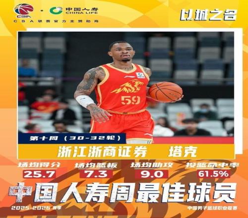 至于广厦在孙铭徽与布朗持续缺席情况下,另一位外援塔克本周出战3场,率队取得3战全胜战绩。塔克场均出场31分钟,能够轰下25.7分、7.3篮板、9助攻的全面数据,投篮命中率61.5%。在对阵天津的比赛中,塔克轰下28分、10篮板、14助攻的三双数据。