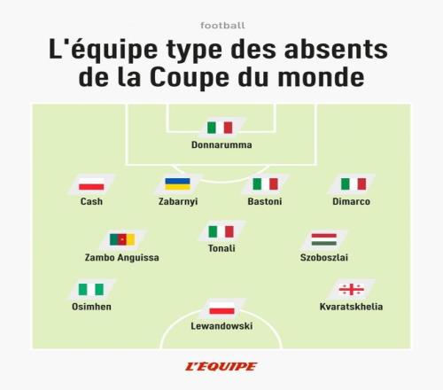 北京时间4月2日,《队报》列缺席2026年国际足联世界杯最佳阵容名单。