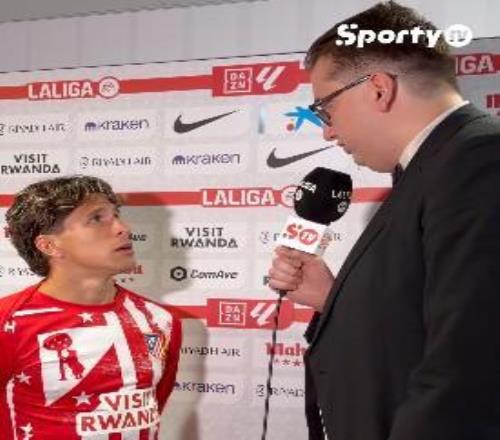 西甲第30轮,马竞主场1-2输给巴萨,为马竞打入进球的朱利亚诺-西蒙尼赛后接受了SportyTV的采访。