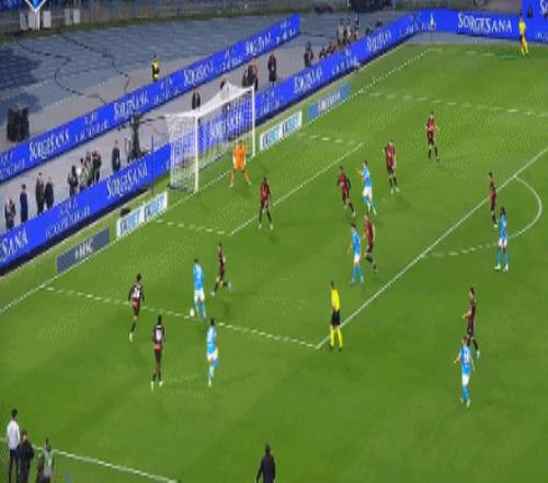第79分钟,那不勒斯左路进攻,阿利松·桑托斯盘带分球,奥利维拉跟进下底传中,门前米兰后卫阿特卡梅解围没顶远,后点波利塔诺跟进小角度破门,打进全场唯一进球。