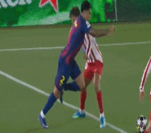 下半场那次巨大争议判罚。当时比赛仍是0-1,马竞门将开出球门球,将球短传给后卫普维尔。令人意外的是,普维尔竟然直接用手拿起门将传来的皮球准备重新处理。按照规则,如果这是正常比赛状态下门将主动传球给队友,队友禁区内手触球极可能构成犯规。巴萨球员第一时间集体围住裁判抗议,要求判罚点球。然而,主裁判毫无表示,VAR也没有介入。