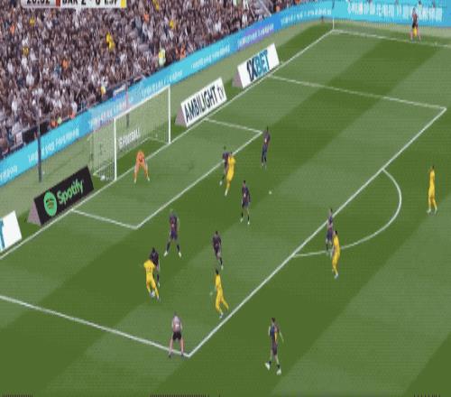 第89分钟,替补登场的德容瞅准时机传球,拉什福德上演踢毽子一般的进球,锦上添花。