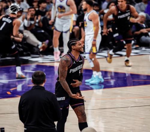 杰伦-格林成为胜负手。他20投14中,其中三分14投8中,得到40分6个篮板4次助攻。布克得到20分6个篮板8次助攻,太阳首发五虎得分都上双。勇士方面,库里得到17分4个篮板4次助攻,他16投仅4中,三分10投仅3中。波杰姆斯基得到全队最高的23分,梅尔顿得到16分。追梦得到5分6次助攻。