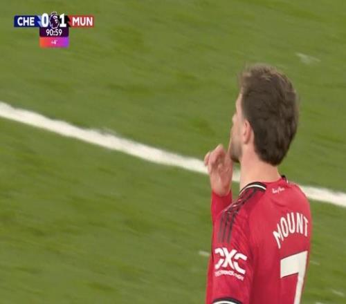 曼联在斯坦福桥1-0击败切尔西的比赛尾声,梅森-芒特替补登场,一触球就遭到嘘声,他对现场切尔西球迷做出了噤声手势予以回应。