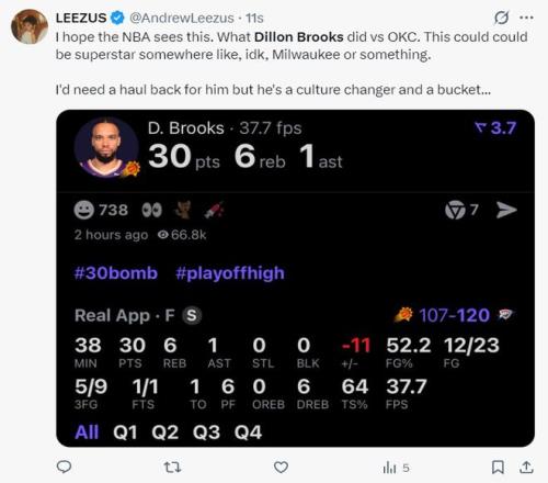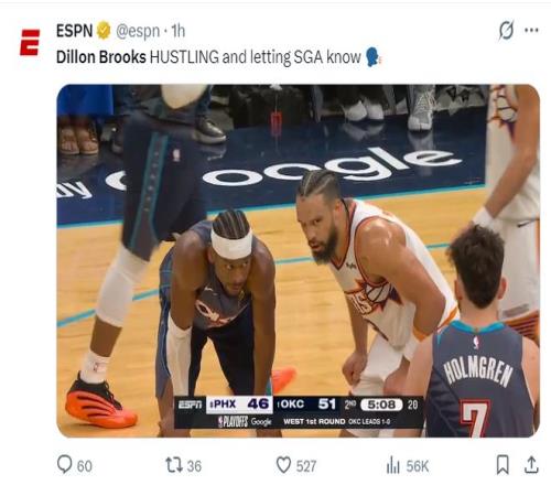 赛后美媒写道:我希望NBA注意点狄龙在对阵雷霆时候的表现,他如果不是在凤凰城,他是有希望成为超级巨星的,我没觉得联盟应该给予他一些优待,他是一位可以塑造球队文化的球员。