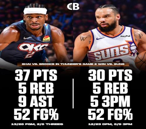 狄龙整个下半场拿到23分,全场比赛23中12,三分9中5,仅1罚球拿到30分6篮板1助攻。SGA全场比赛25中13,罚球7中7拿到37分9助攻5篮板。