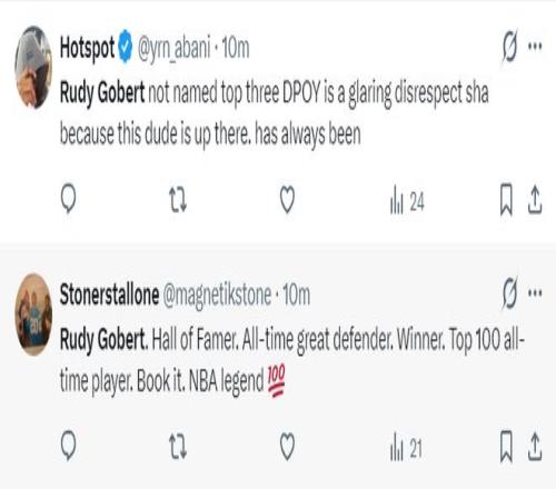 美媒:戈贝尔没有入选DPOY前三是一种不尊重,戈贝尔是未来名人堂成员。史上最出色的防守球员,排名前 100 的历史顶级球员,NBA 传奇人物。
